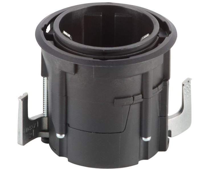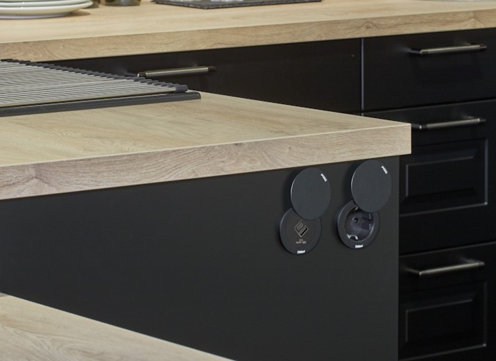 Design -palkittu pistorasia on helppo asentaa, koska sen voi kiinnittää paikalleen edestäpäin. Suojakansi on tilattava erikseen.