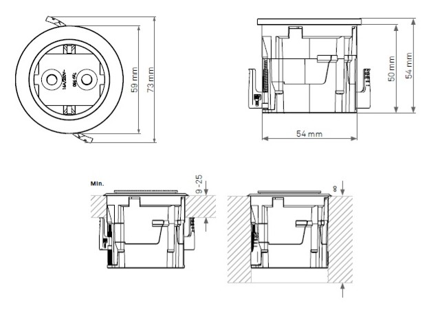 - upotus Ø 54, syvyys 50 mm